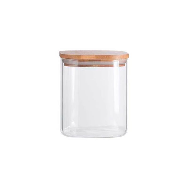 Pote De Mantimentos Vidro Flat Quadrado 800Ml Com Tampa Em Bambu Oikos