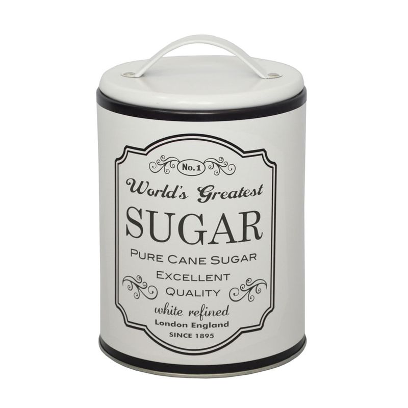 POTE DE METAL REDONDO FRAME SUGAR BRANCO COM TAMPA 10,7X16,3CM