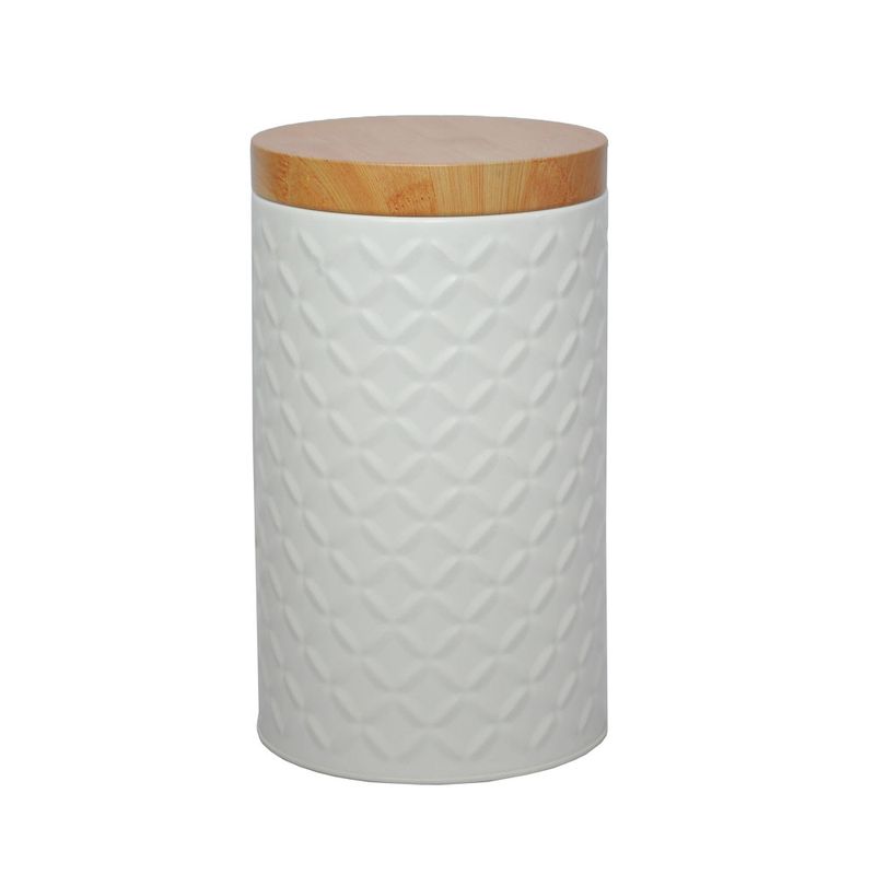 POTE DE METAL REDONDO WOOD LID BRANCO TAMPA BAMBU 10,8X18,6CM