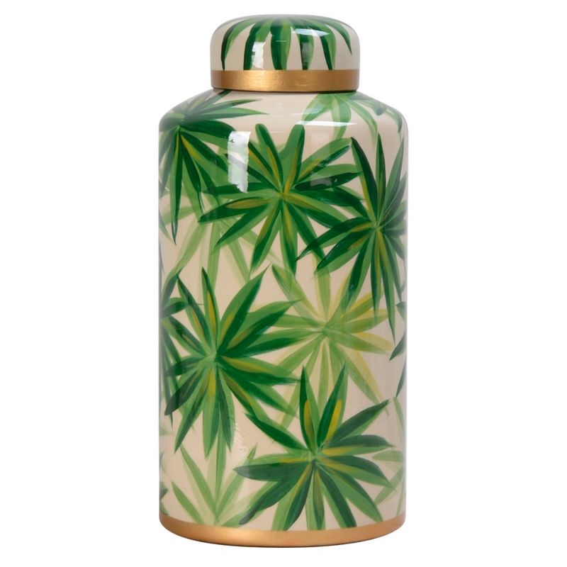 Pote De Porcelana Folhas Lupino 14x14x28cm