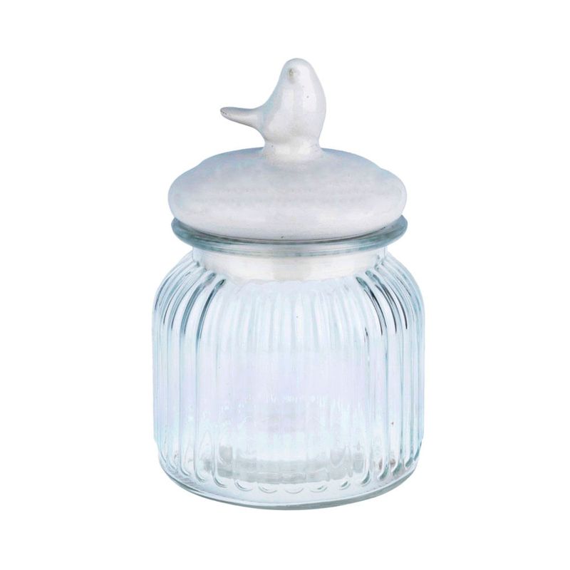 Pote De Vidro C/Tampa Bird On Top Branco Grande