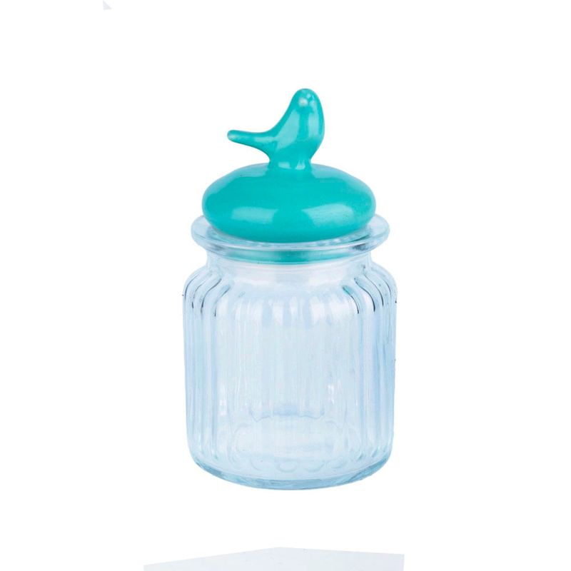 Pote De Vidro C/Tampa Bird On Top Verde Pequeno