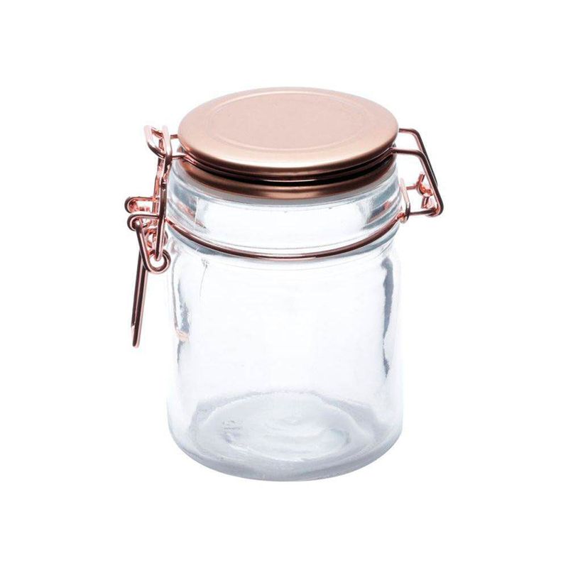 POTE DE VIDRO COOPER FLIP CILINDER 175ML HERMÉTICO C/ TAMPA COBRE