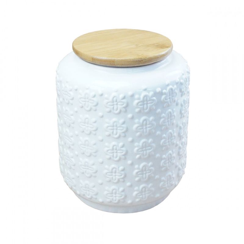 POTE DECORATIVO DE CERÂMICA BRANCO COM TAMPA 11X11X13,5CM