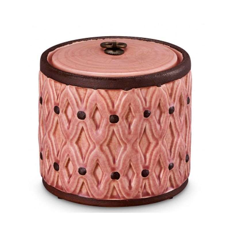POTE DECORATIVO DE CERÂMICA ROSA COM DETALHES 17XX17X15,5CM