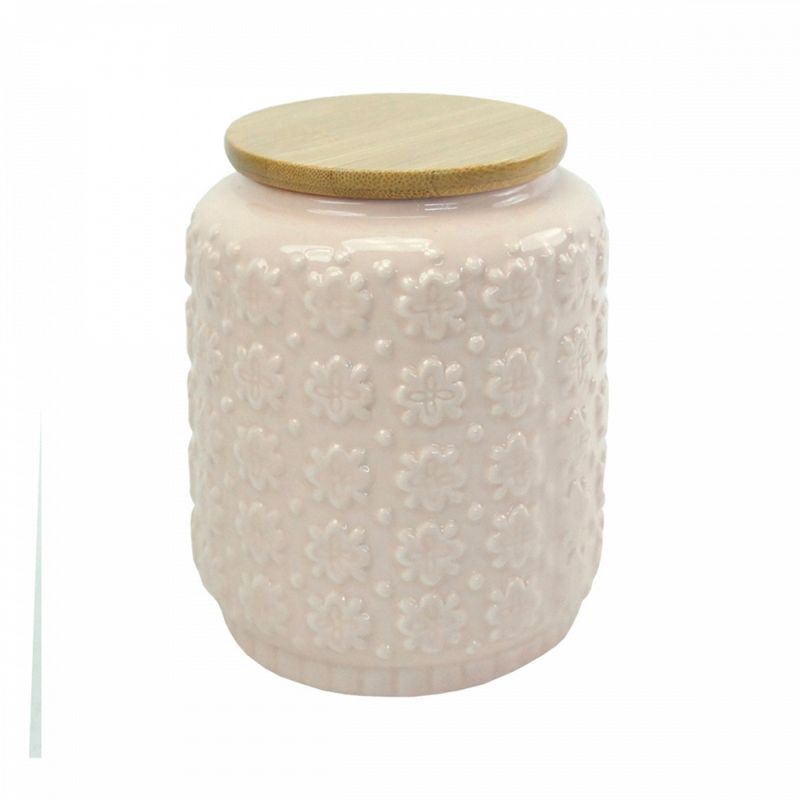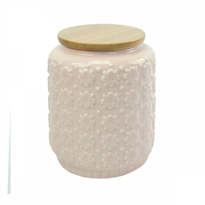 POTE DECORATIVO DE CERÂMICA ROSA COM TAMPA 11X11X13,5CM