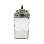 Pote Decorativo De Vidro Com Tampa De Metal Prata 10cmx10cmx27cm