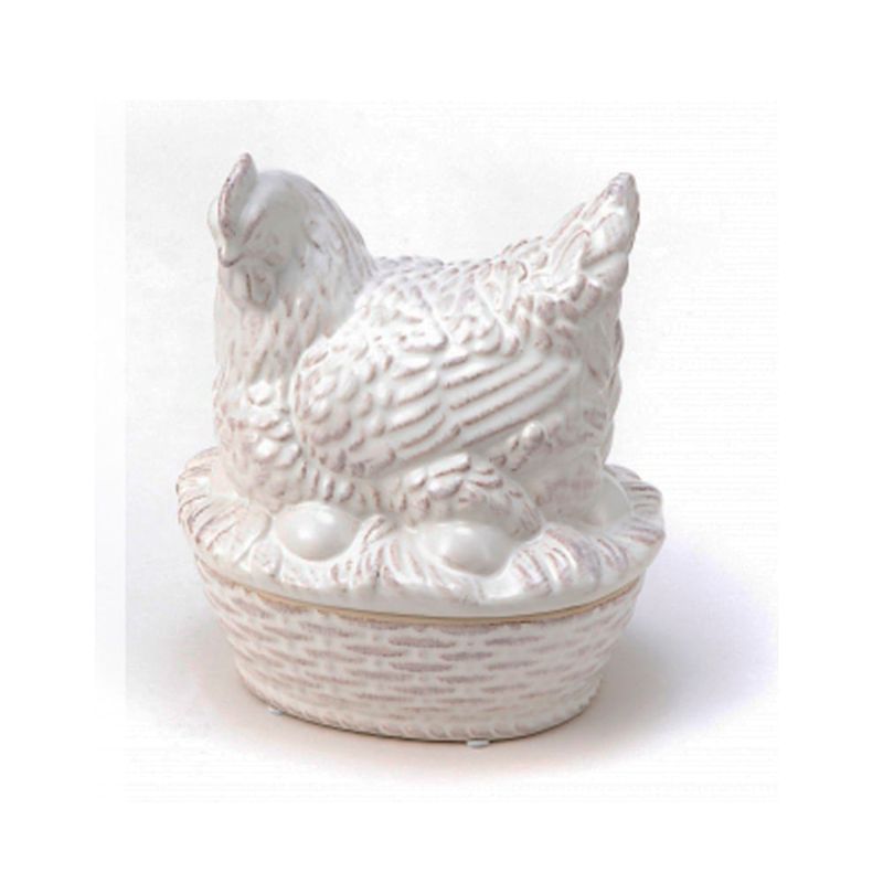 POTE GALINHA COM OVOS DE CERÂMICA BRANCA 20X15X20CM