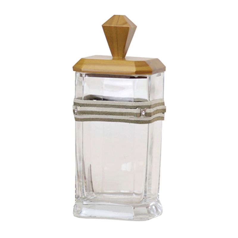 Pote Ornatus Baixa Vidro Quadrado Tampa Madeira