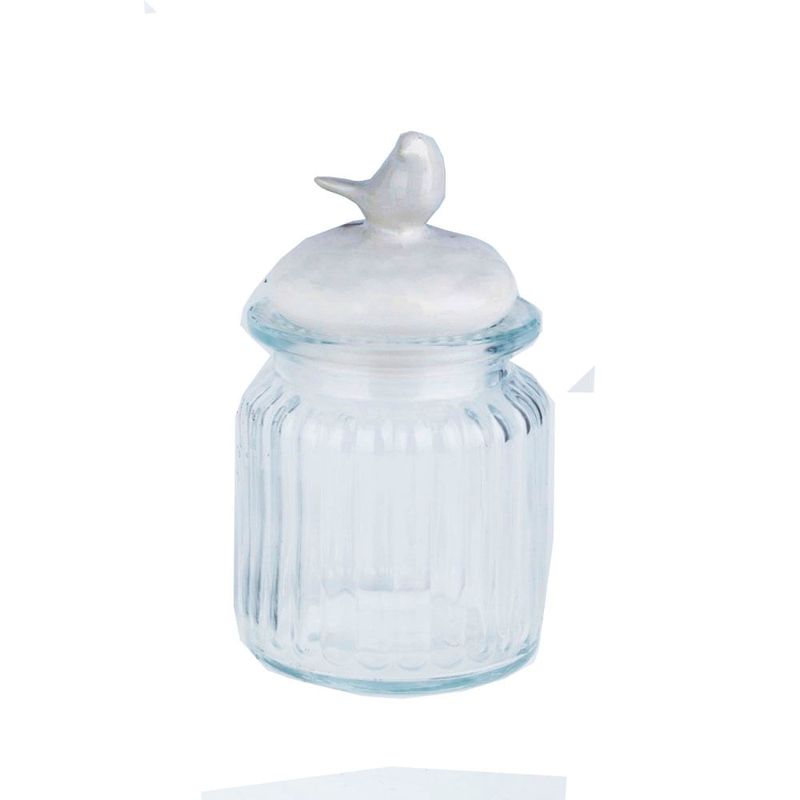Pote Vidro De C/Tampa Bird On Top Branco Pequeno