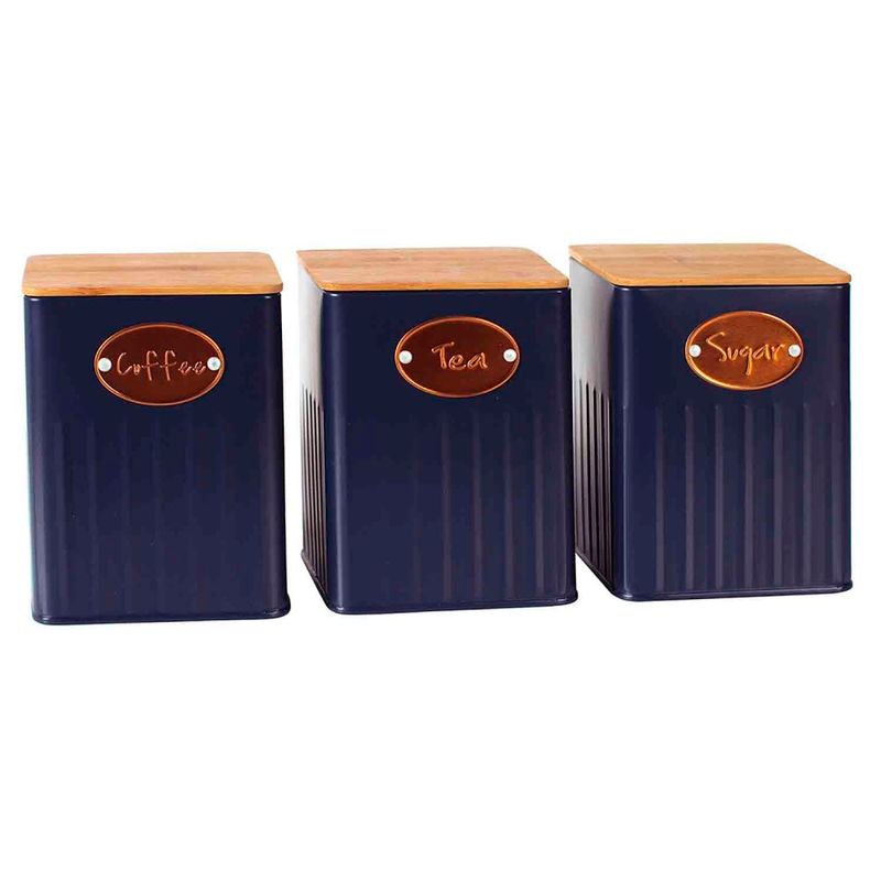 Potes Porta Condimentos De Ferro Azul E Madeira 3pcs