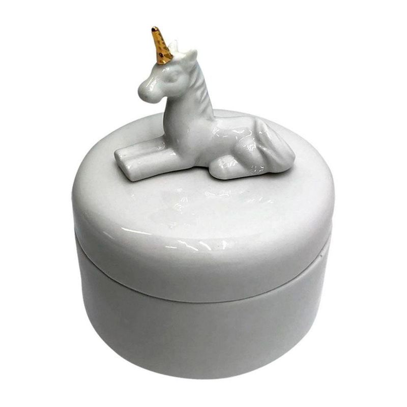 Potiche De Cerâmica Round Little Unicorn Branco Pequeno