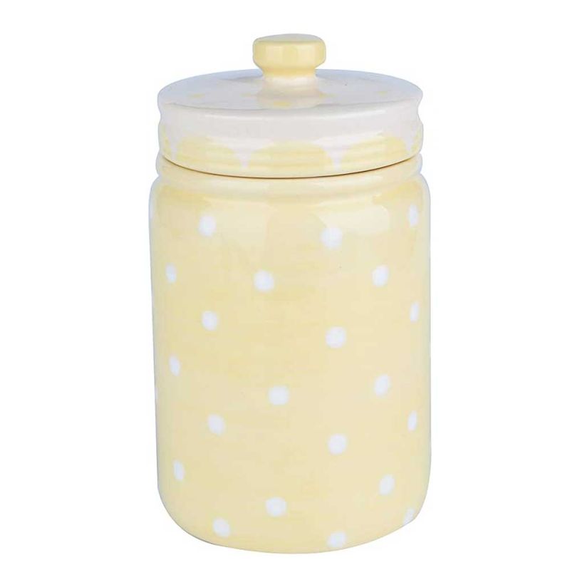 Potiche Ornamental Porcelana Poá Branco e Amarelo