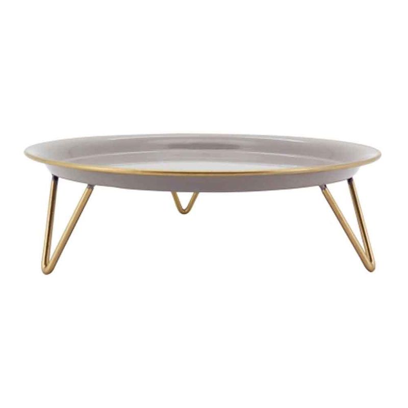 Prato Para Bolo Candy Cinza E Dourado 24x7cm