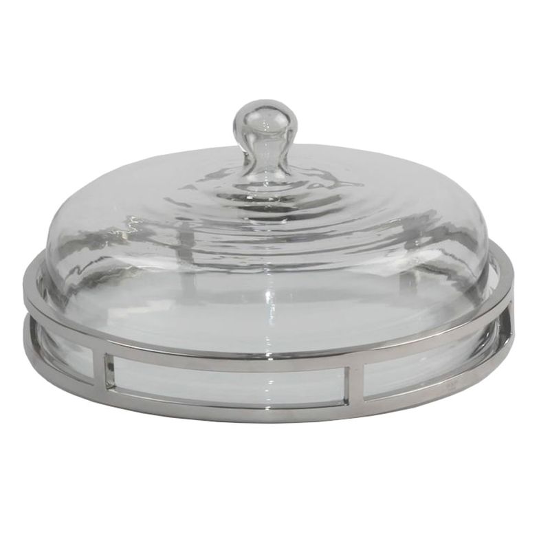 PRATO PARA BOLO DE AÇO INOX COM TAMPA DE VIDRO