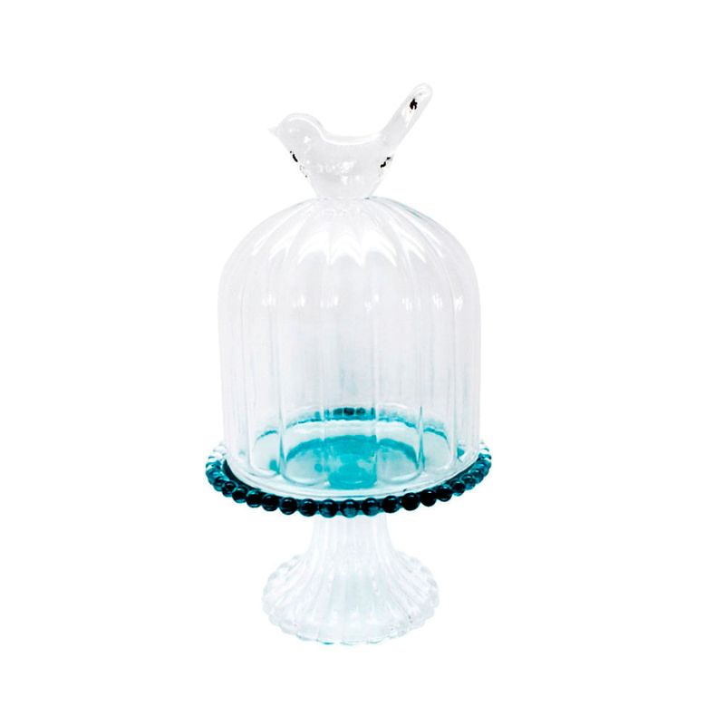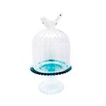 Prato Para Doce Bird Com Suporte Em Vidro Transparente E Azul