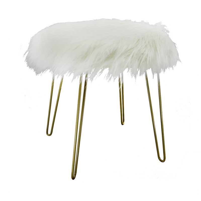 PUFF DE METAL DOURADO E TECIDO BRANCO