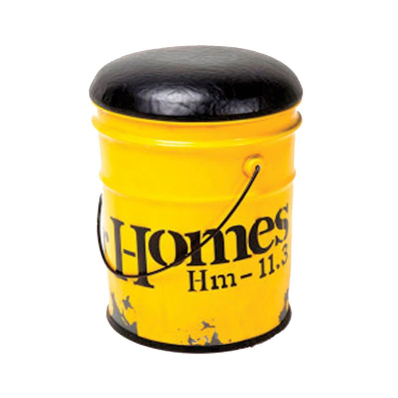 PUFF ESPRIT LOFT DE METAL E COURO SINTÉTICO AMARELO E PRETO