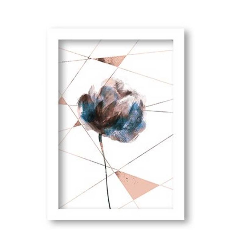 Quadro ´Flor Rose e Azul´ 3549 Moldura Branca Tamanho A3