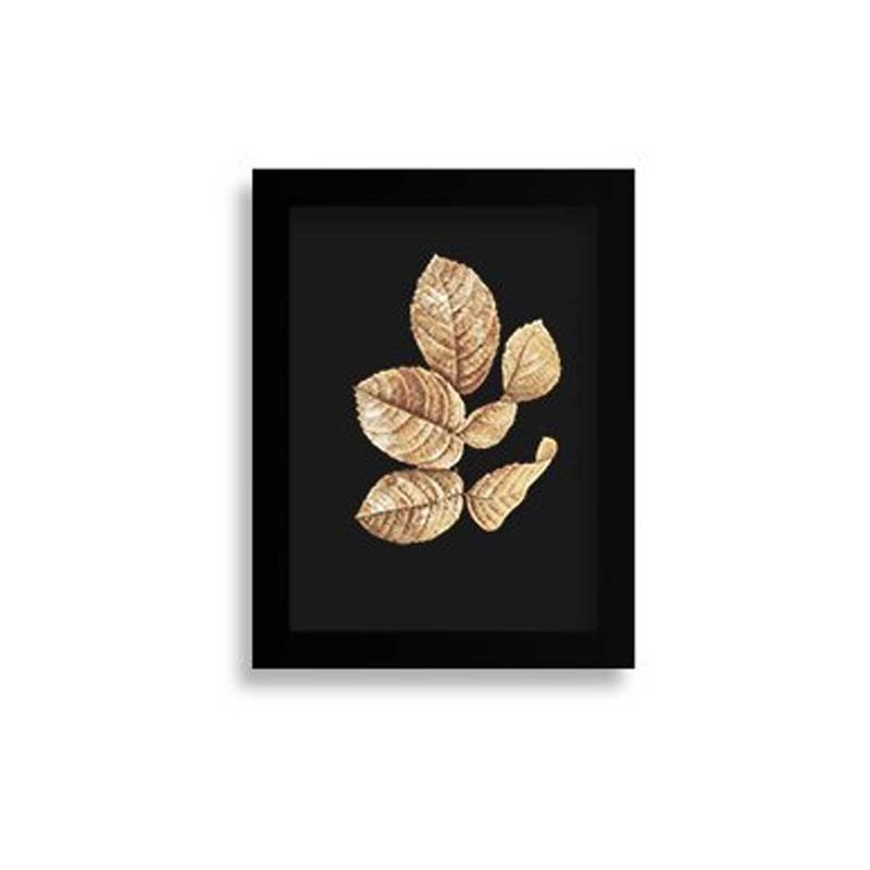 Quadro Folhas Douradas Moldura Preta Tamanho A4