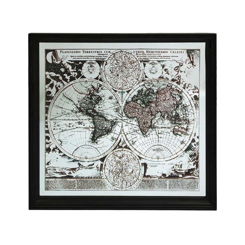QUADRO MAPA MUNDI ESPELHO E MOLDURA PRETA