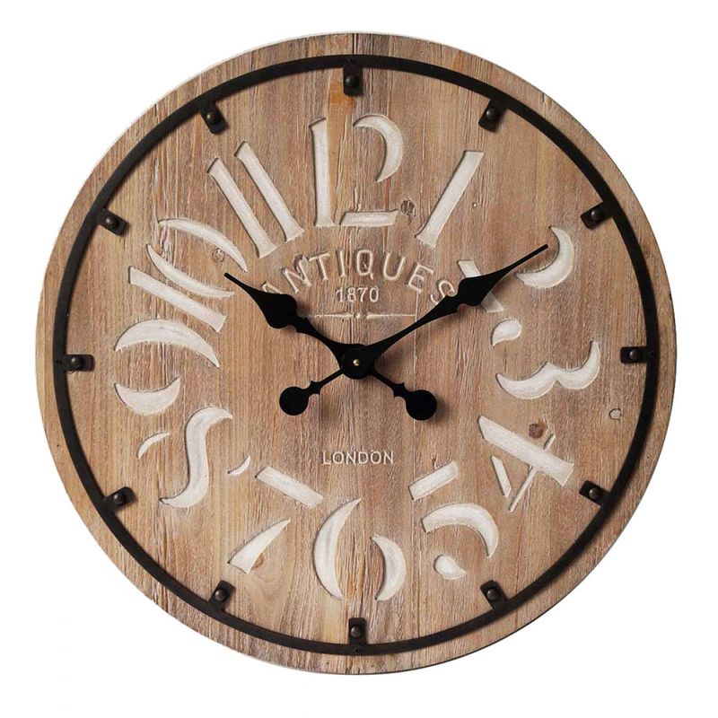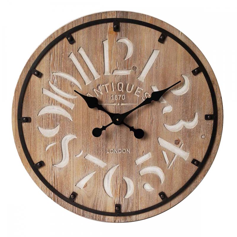 RELÓGIO DECORATIVO ANTIQUES DE PAREDE EM MADEIRA E METAL 60CM