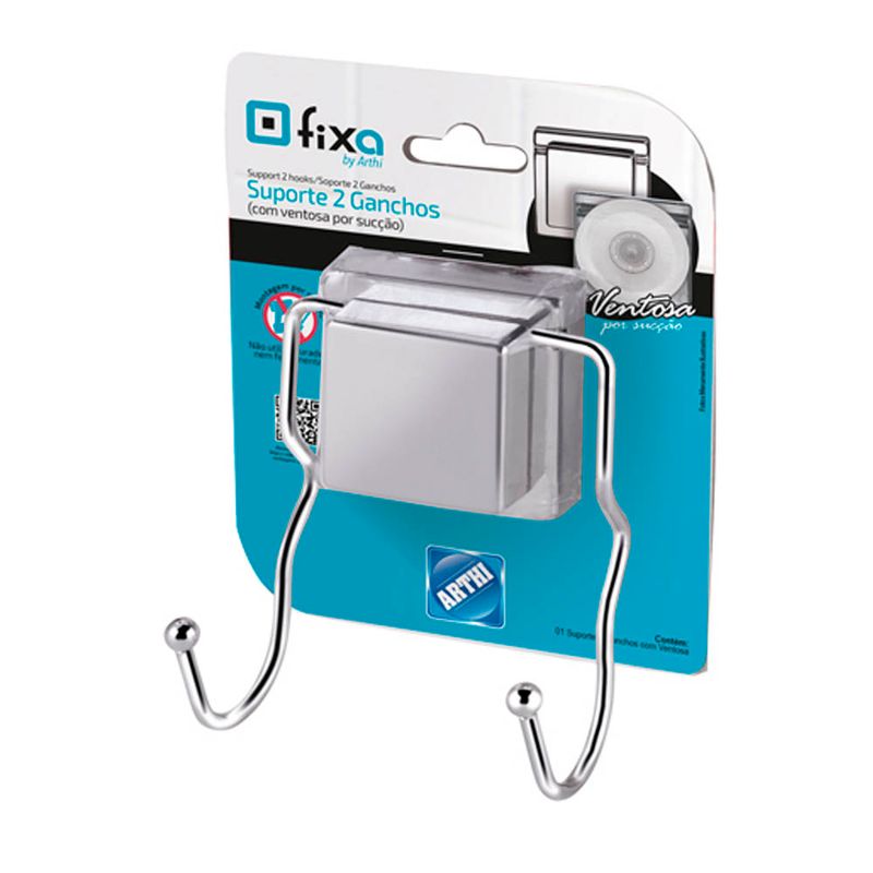 SUPORTE COM 2 GANCHOS FIXADO POR VENTOSA FIXA