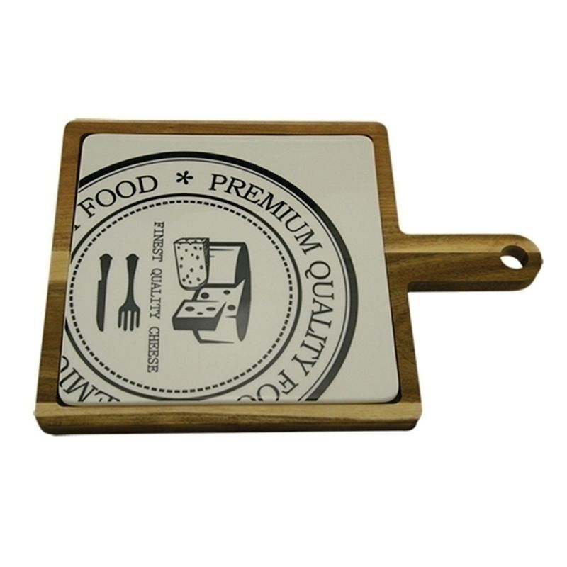 TÁBUA DE QUEIJO MADEIRA E CERÂMICA 32X25X1,5CM