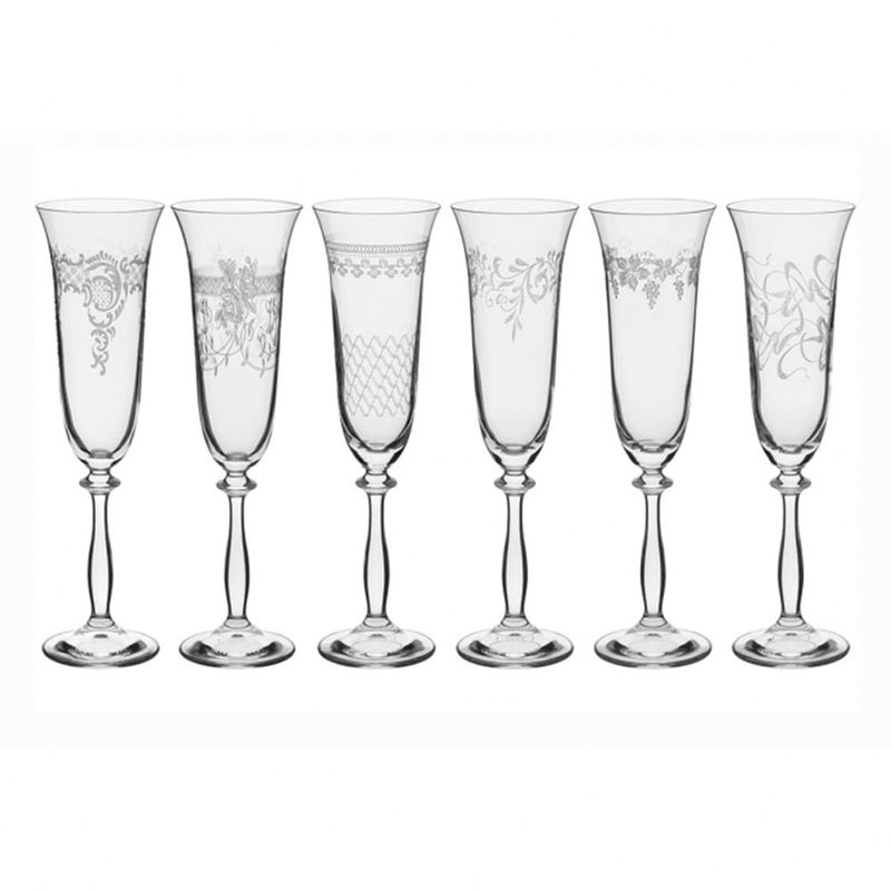 TAÇAS DE CHAMPANHE ROYAL DECORADO 6 PEÇAS 190ML