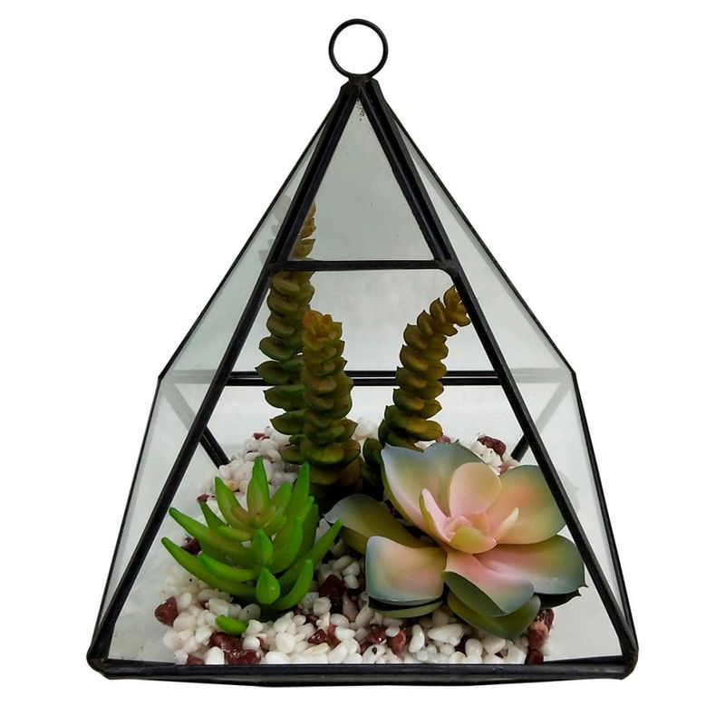 Terrário De Vidro E Metal Preto 16x16x20cm