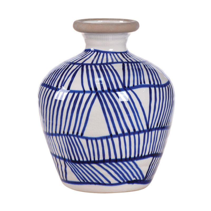 Vaso De Cerâmica Azul E Branco Decorativo 22,5x26,5cm