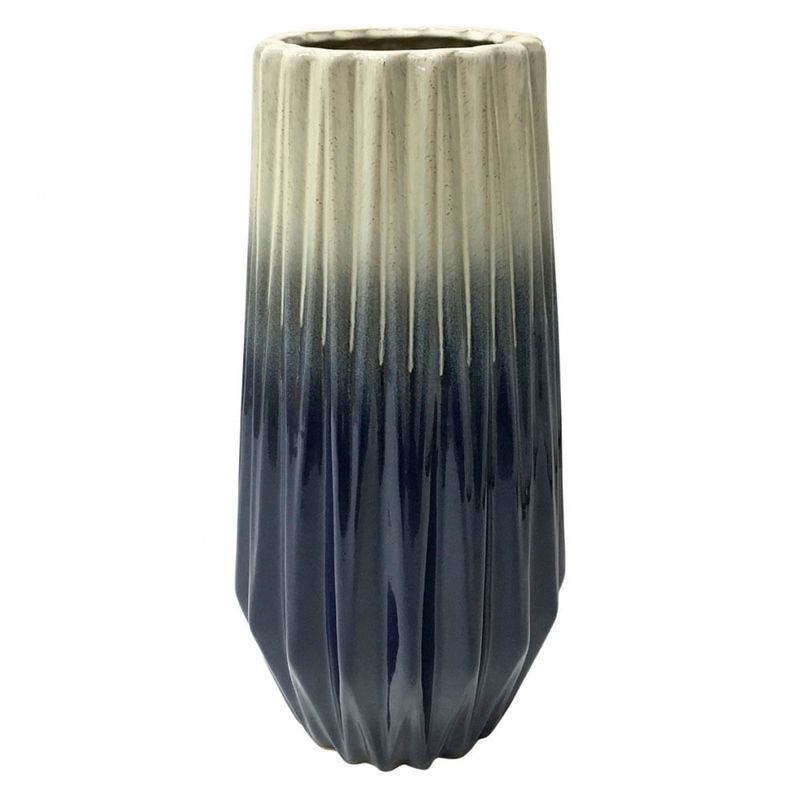 Vaso De Cerâmica Duo Color Azul E Cinza 20x20x40cm