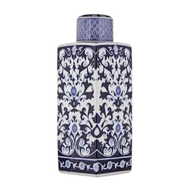 VASO DE CERÂMICA PARA DECORAÇÃO BRANCO E AZUL COM TAMPA