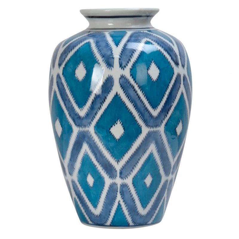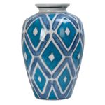 Vaso De Porcelana Geométrico Azul 30x20cm