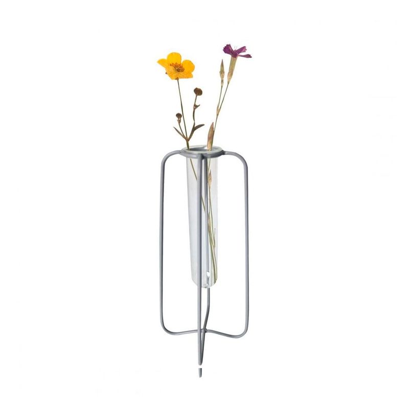 Vaso De Vidro Com Aramado Em Metal Cinza 17cm