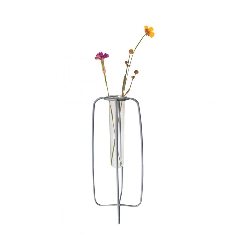 Vaso De Vidro Com Aramado Em Metal Cinza 23,5cm