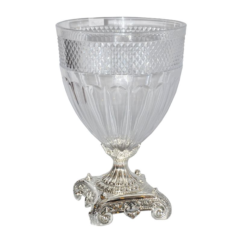 VASO DE VIDRO COM BASE DE METAL 33X24,5X43CM ACERVO CASA