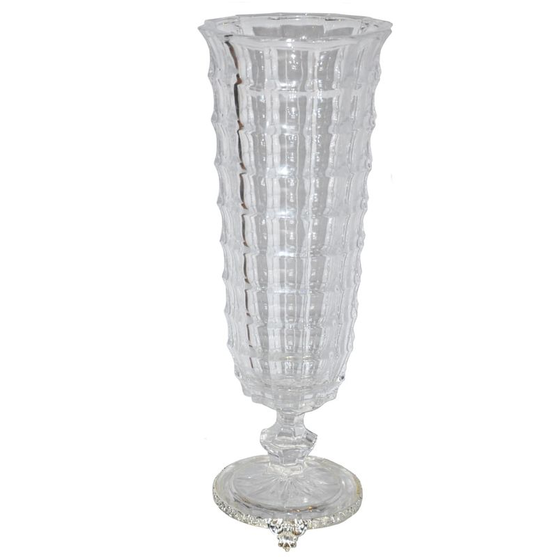VASO DE VIDRO COM BASE DE METAL CROMADO ACERVO CASA