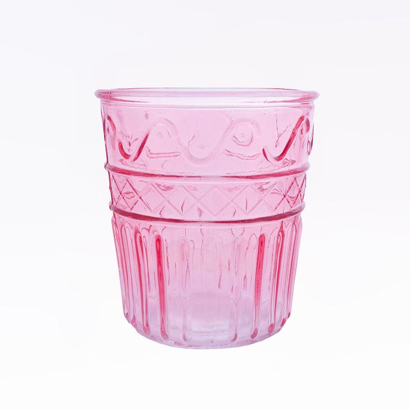 Vaso De Vidro Detalhado Rosa 13,5x15,3cm