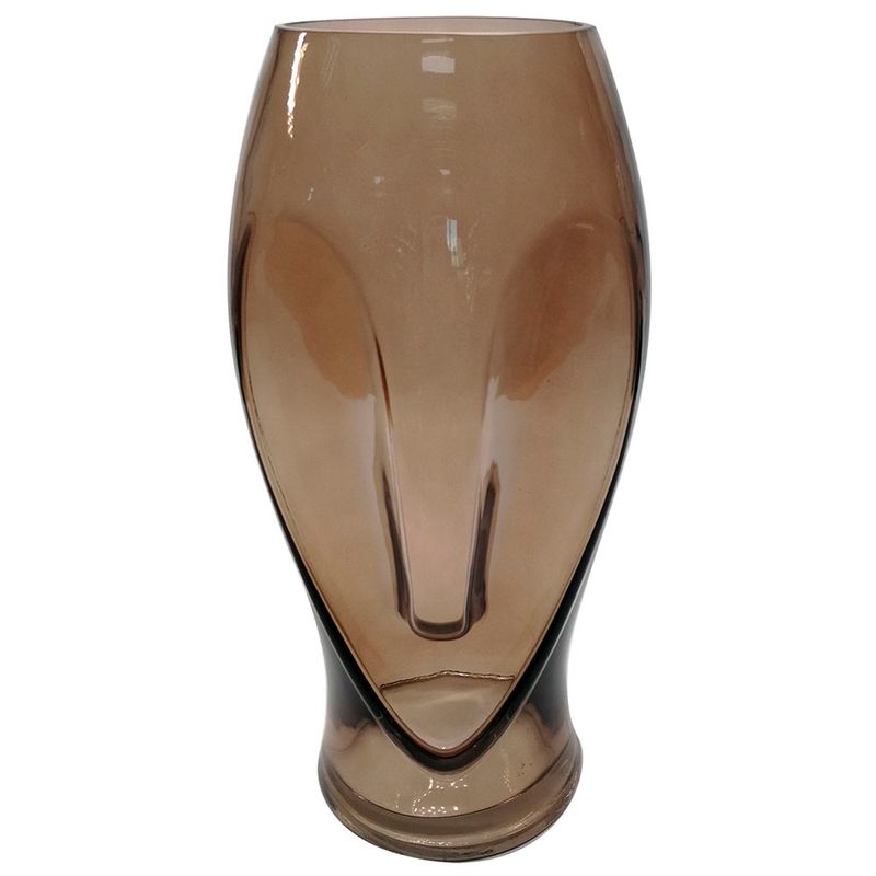 Vaso De Vidro Fume Com Formato De Rosto 16x16x30cm