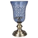 VASO DECORATIVO AZUL E BRANCO COM PÉ 17X33CM