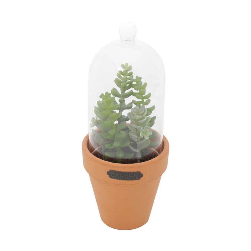 Vaso Decorativo Cotyledun Sucullent Verde com Redoma De Vidro