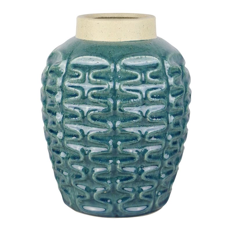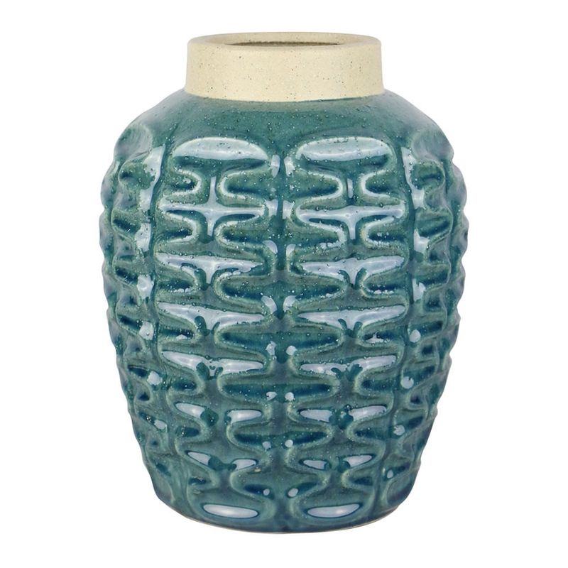 Vaso Decorativo De Cerâmica Azul Turquesa 26x33cm