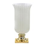 VASO DECORATIVO DE VIDRO BRANCO COM BASE DOURADA 30CM