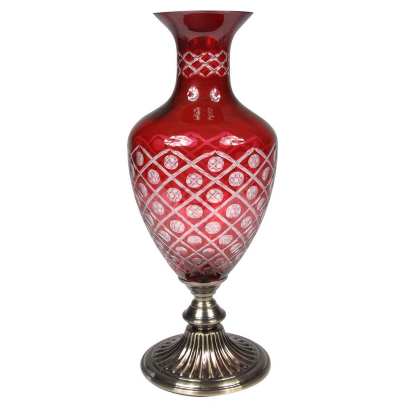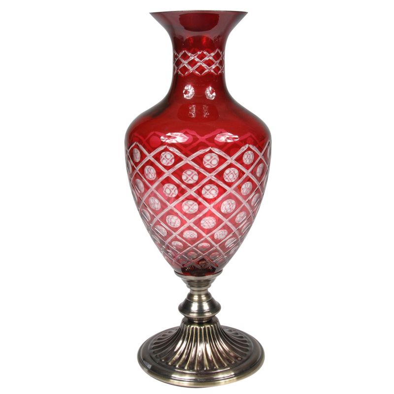 Vaso Decorativo De Vidro Vermelho E Branco Com Pé 17x46cm