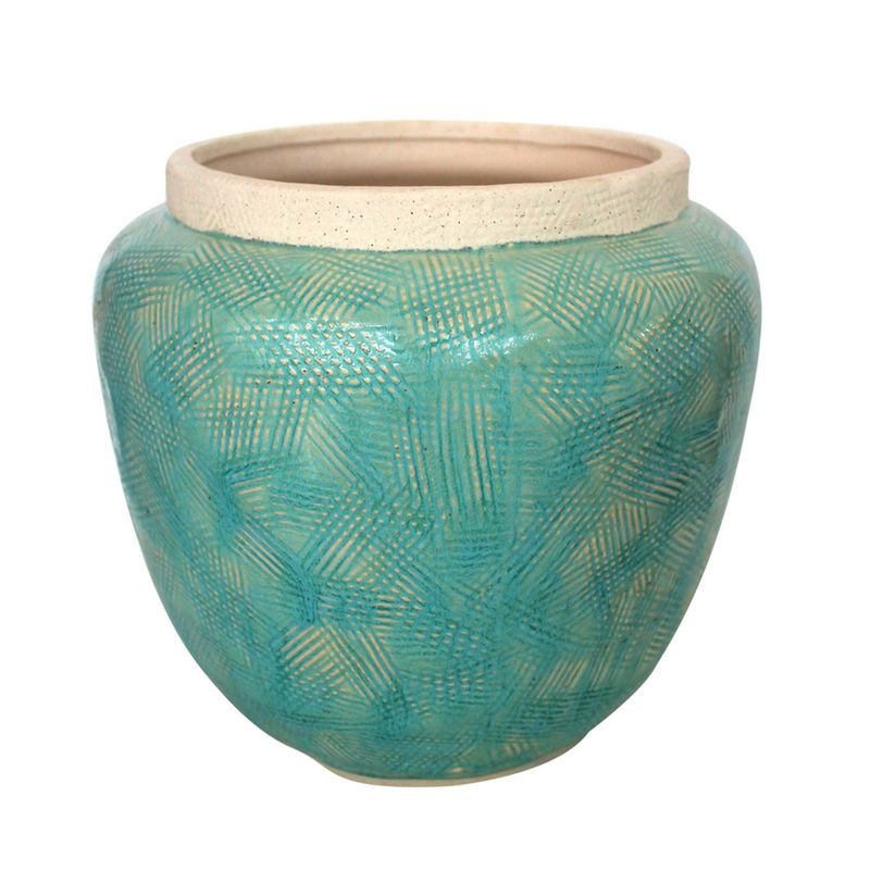 VASO DECORATIVO EM CERÂMICA VERDE 26X24CM
