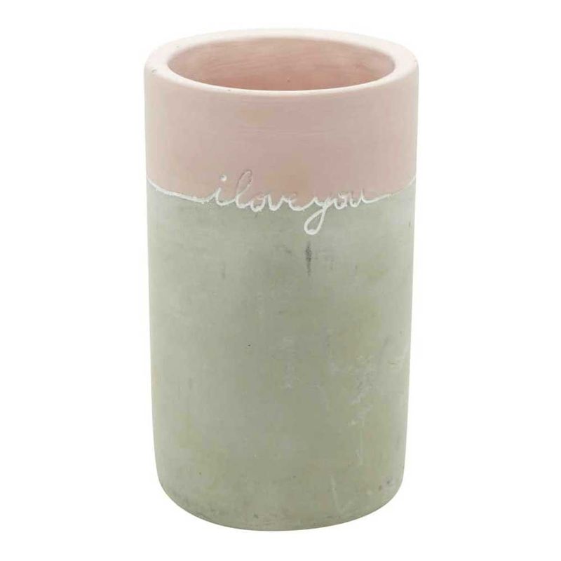 Vaso I Love You Em Concreto Long Rosa e Cinza 11x19m