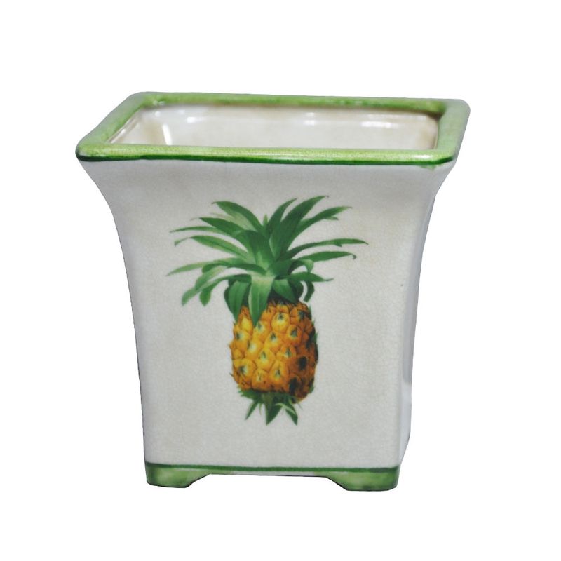 Vaso Quadrado De Cerâmica Com Desenho Abacaxi
