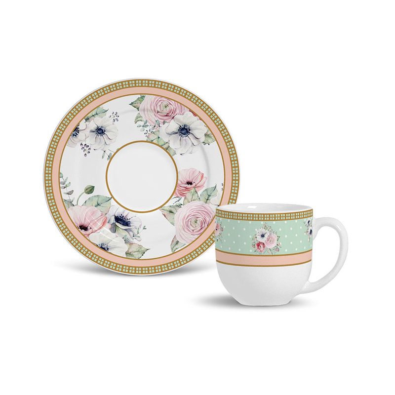 Xícara De Café Flat Amore Rosas Jogo 6 Peças