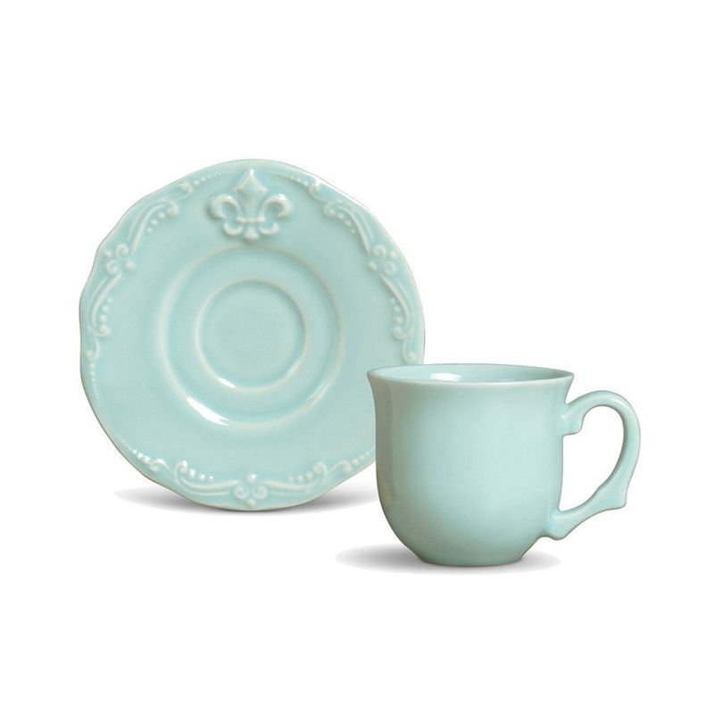 Xícara De Café Flor De Lis Verde Jogo 6 Peças